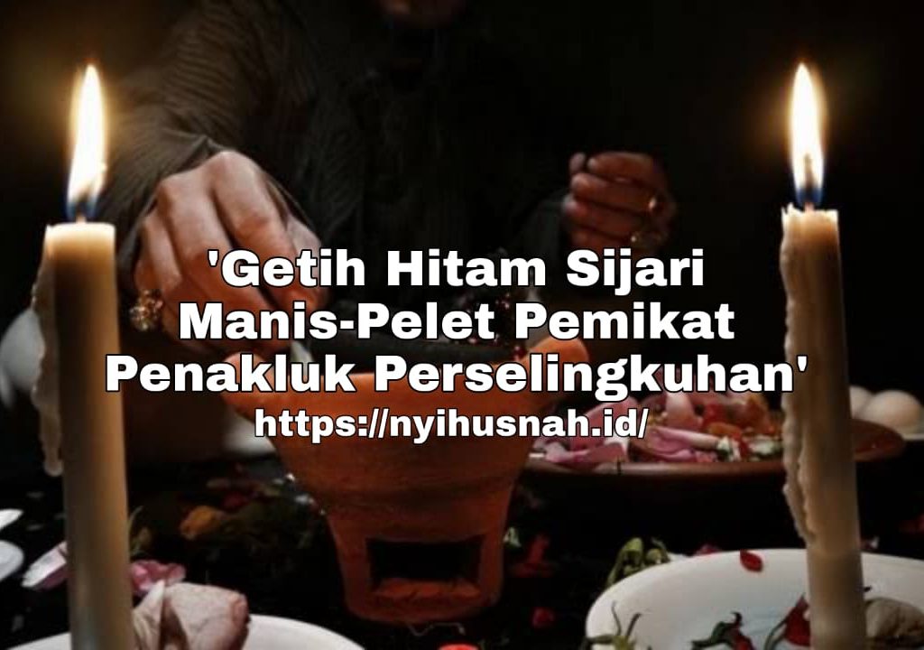 GETIH HITAM JARI MANIS adalah ritual khusus untuk merebut kembali cintanya dari pihak ketiga dan bisa diprogram KUNCI MATI rasa cintanya pada yang lain. Tetapi ritual ini tidak bisa dibuat sembarangan hanya sekedar main-main atau dendam semata ,dikarenakan sangat bahaya dan memakan biaya ritual yang sangat besar nilai nya mencapai puluhan juta bahkan ratusan juta ‘ungkap nyi husnah’. Tak heran bila Nyi Husnah sering dikunjungi berbagai orang dari daerah seperti Sumatera, Sulawesi, Papua – Irian Jaya, Kalimantan, Medan dll juga dari negara luar Inggris, Macco, Jepang, Korea, China, Australia, Amerika. Tahilan dllnya hanya untuk syarat pelengkap jalan sempurnanya ritual getih hitam jari manis karena diwajib kan datang walau hanya satu kali saja.